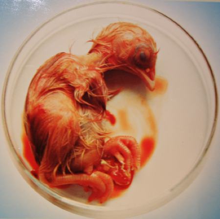 - Sjette dag: Begynnelsen av dannelse av nebb og eggtann